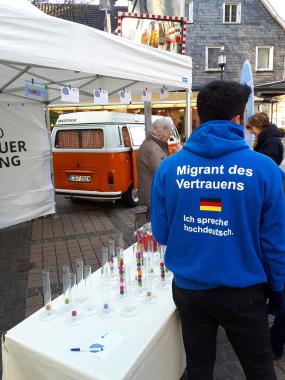 Von Benedikt Jäger. Im November brach das Team der Konrad-Adenauer-Stiftung zur Interkulturellen Busreise durch Westfalen auf. Mit an Bord: Ali Can, Aktivist und Autor – und: Migrant des Vertrauens. Gemeinsam mit ihm wollte die Stiftung mit Bürgern ins Gespräch kommen und über Integration reden. Denn zweifelsohne hat sich das Gesprächsklima hierzulande in den letzten Jahren verändert, wenn es um das Thema Integration geht. Deshalb begibt sich die Stiftung mit verschiedenen Veranstaltungen auf die Suche nach dem Schlüssel für gelungene Integration. Für Ali Can steht der fest: wertschätzende Kommunikation. Wie können wir einander wieder offen begegnen? Worauf müssen wir achten, wenn wir uns unvoreingenommen austauschen wollen? Und wie können wir mit dem breiten Meinungsspektrum zum Thema Integration umgehen? Mit einem Oldtimer Bus ging es zu den Stationen in Schloß Neuhaus, Paderborn, Schwerte, Dortmund und Aplerbeck, um Meinungen einzufangen. Ob in Workshops an Schulen, Diskussionsveranstaltungen am Abend oder in der Fußgängerzone: drei Tage lang legten sich Ali Can und das KAS Teams in Zeug, um mit den Westfalen über Integration zu sprechen. Dabei wurden zahlreiche Denkanstöße gegeben, Meinungen ausgetauscht und angeregte Diskussionen geführt. Fest steht am Ende jedenfalls eins: Integration ist zwar ein gesamtgesellschaftliches Anliegen, doch hat jeder und jede seine bzw. ihre ganz persönliche Idee davon, wie sie gelingen mag. Dafür braucht es Engagement auf allen Seiten. Ali Can geht mit bestem Beispiel voran.