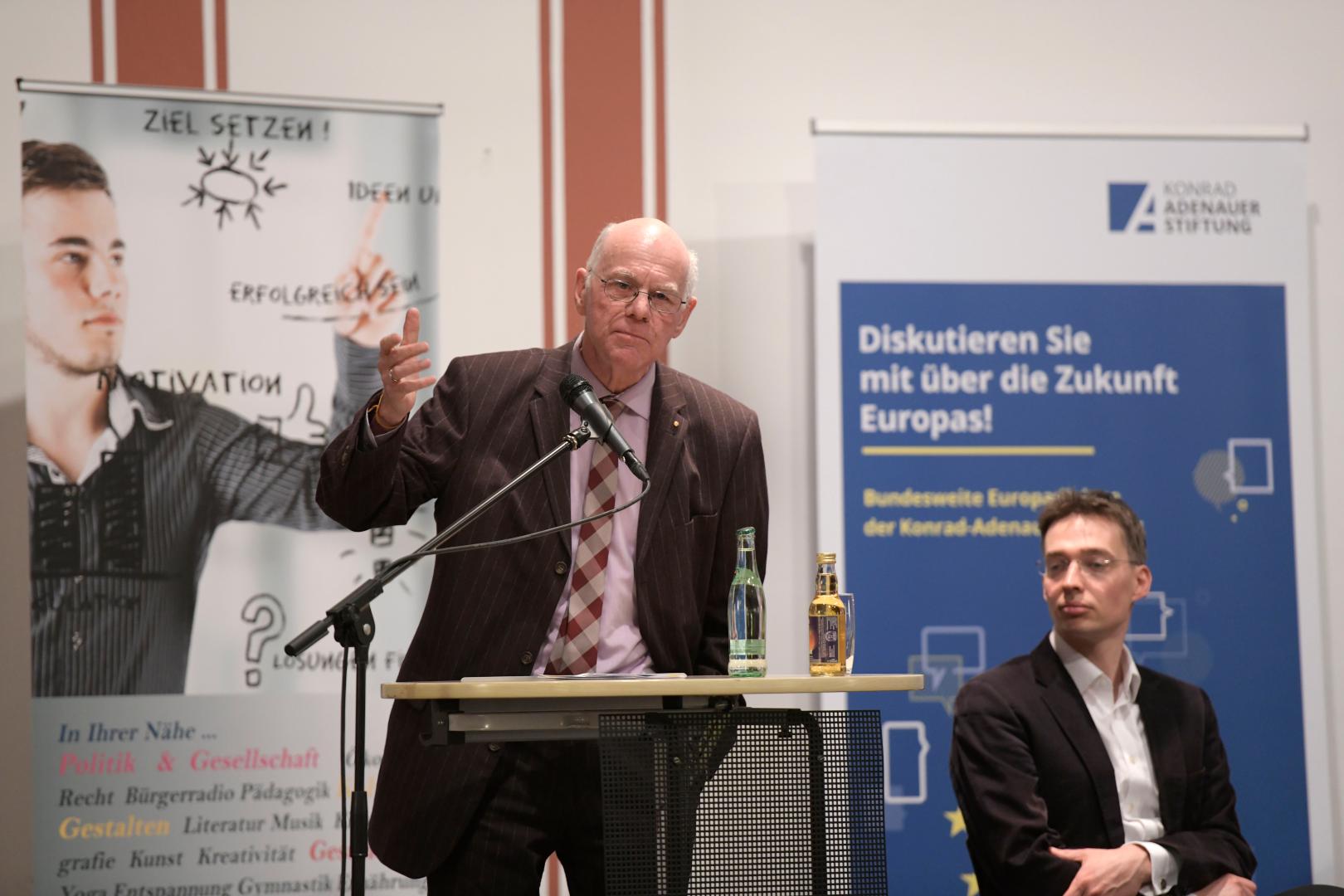 Neben dem Image der EU und dem Populismus geht es den Bürgerinnen und Bürgern auch um die Entscheidungsfindung: Viele der Gäste wünschen sich in größerem Maße Mehrheitsentscheidungen. Diese Entscheidungen gelten dann, sagt Lammert, doch das hieße nicht zwangsläufig, dass sie immer richtig seien. Ein besseres System gäbe es aber nicht: „Das ist das Prinzip der Demokratie.“ Als abschließender Gedanke zum Thema Europa bleibt vielen Gästen wohl ein Satz aus Lammerts Rede im Gedächtnis: „Wenn die Einigung nach all den Erfahrungen, die wir mit Europa haben, nicht funktionieren würde, hätten wir Anspruch auf den Titel der dämlichsten Generation, die je auf diesem Kontinent gelebt hat.“