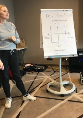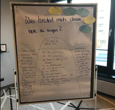 Am zweiten Tag des Seminares ging es um Frauen und Macht. Referentin Lisa Altenpohl stellte ein Statusmodell vor, mit dessen Hilfe sich verschieden Situationen, die die Teilnehmerinnen zuvor als problematisch benannt hatten, analysieren und bestenfalls lösen lassen. Zudem wurde thematisiert und anschließend eingeübt, wie sich Frauen erfolgreich abgrenzen, schlagfertig handeln und auch Nein sagen lernen.