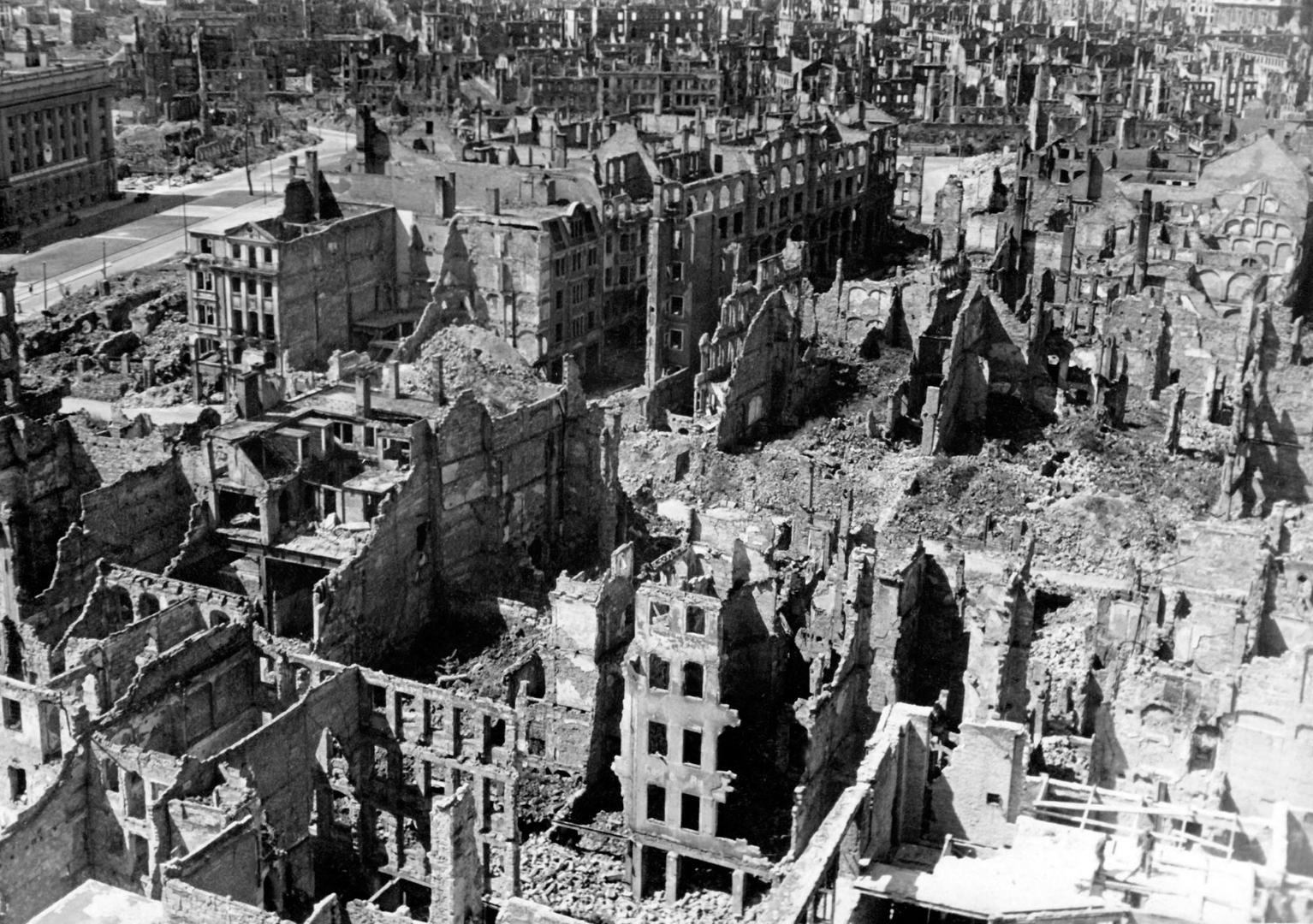 Aufnahme der Altstadt von Dresden nach den Luftangriffen im Februar 1945.