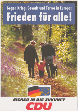 Links: Europawahlplakat von 1979; Mitte: Deckblatt des gemeinsamen Europawahlprogramms der CDU und CSU von 2019; Rechts: Europawahlplakat von 1994