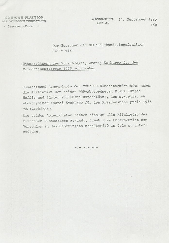 Der Tag der Konrad-Adenauer-Stiftung steht im Jahr 2008 unter dem Motto „Menschenrechte weltweit sichern“. Das Archiv für Christlich-Demokratische Politik hat zu diesem Anlass zwei Ausstellungen konzipiert. In der Flugblattausstellung sind exemplarisch verschiedene Dokumente zusammengestellt, mit denen sich CDU-Politiker für die Einhaltung von Menschenrechten eingesetzt haben. Neben dem Kampf gegen die Rechtsbeschränkungen in der DDR zählt dazu das Engagement für den russischen Menschenrechtler Andrei Sacharow. Zur zweiten Ausstellung mit Plakaten gelangen Sie über die rechte Navigation.