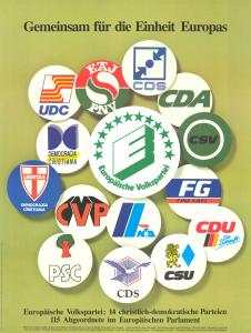 - Der Bestand 09-007 „Europäische Volkspartei“ (Link zum Online-Findbuch) dokumentiert umfassend die Zusammenarbeit der europäischen christdemokratischen Parteienfamilie. Besondere Relevanz für die Europawahlen besitzen die Unterlagen aus der Gründungsphase (ab 1976), insbesondere zur Programmarbeit für die erste Direktwahl 1979. Zu späteren Wahlen finden sich Unterlagen u.a. der Programmkommission der EVP und zur Wahlkampfplanung in den einzelnen Mitgliedsländern.