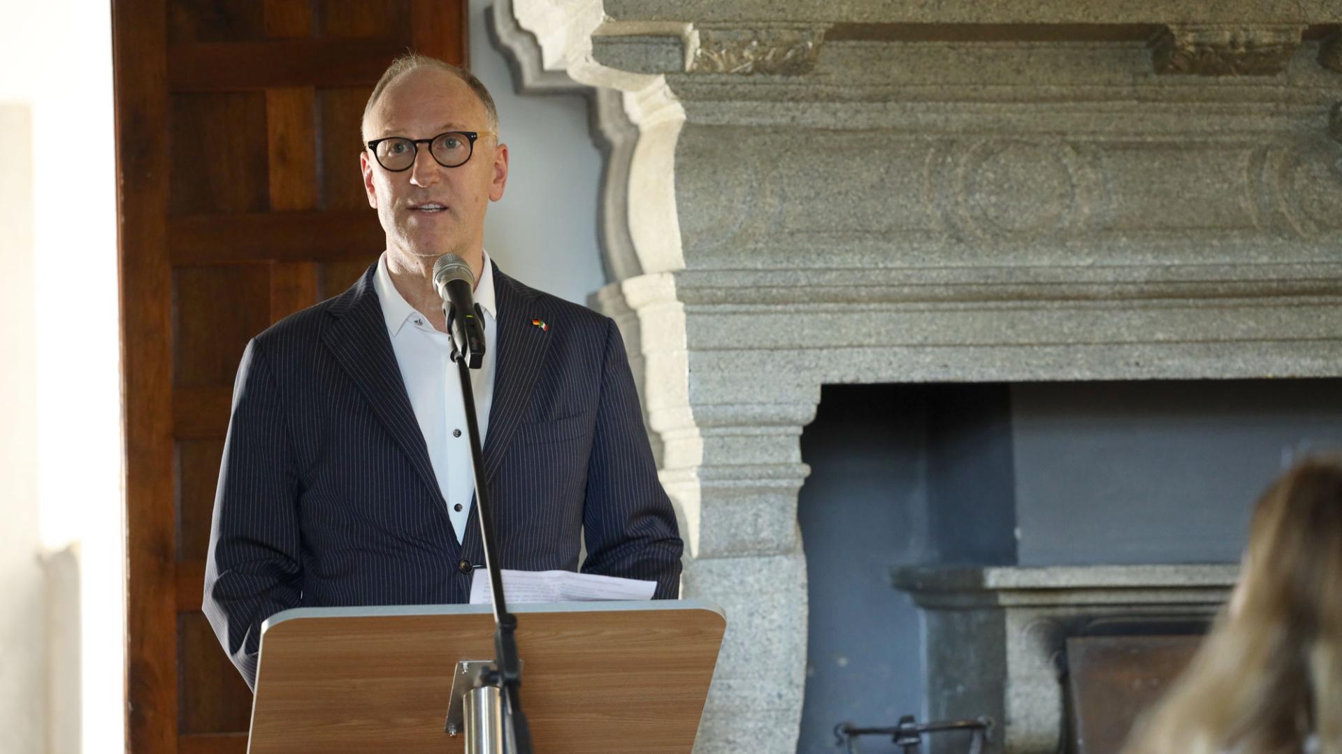 In seiner Einführung erläuterte Dr. Michael Borchard, Leiter WD/ACDP, nicht nur den Stelenrundgang und seine Besonderheiten, sondern wies auch auf die Entstehung dieser Idee hin. Sie sei buchstäblich vor etwas mehr als zwei Jahren bei einem Glas Grappa in der Villa als „Schnapsidee“ von Heiner Enterich und ihm entstanden, in dem Bewusstsein, dass die Tatsache, dass die Villa La Collina neben dem Wohnhaus in Rhöndorf der zweite große authentische Erinnerungsort an Adenauer sei, eine stärkere Betonung der historischen Zusammenhänge erfordere. Man begegne ihm über den Rundgang nun sehr lebendig als Natur- und Gartenliebhaber, Boccia-Spieler, aber eben auch als Regierungschef im „Ersatzkanzleramt“ Villa La Collina. Michael Borchard dankte auch dem Projektteam, das sich mit so viel Engagement an die Sache gemacht habe: Christiane Stahr, Anna Kim und Philip Rosin.