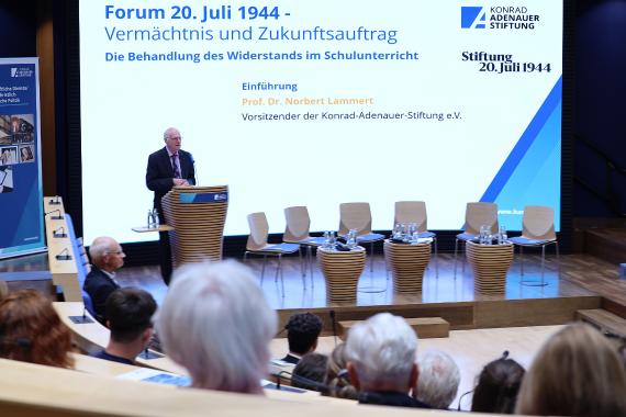 Für Norbert Lammert stand fest: Auch um solchem Missbrauch entgegenzutreten, erinnern die Konrad-Adenauer-Stiftung und die Stiftung 20. Juli 1944 jedes Jahr „an die mutigen Männer und Frauen, die Widerstand geleistet haben gegen das nationalsozialistische Terror-Regime. Ihr Vermächtnis gilt es den nachkommenden Generationen zu vermitteln, sodass sie den extremistischen Gefahren unserer Zeit begegnen können.“ Und das muss bereits in der Schule beginnen, fasste Karin Prien zusammen. Ihr Fazit: „Sich eine eigene Meinung zu bilden, das geht nicht von heute auf morgen, aber in der Schule legen wir einen wichtigen Grundstein für Freiheit und Demokratie.“