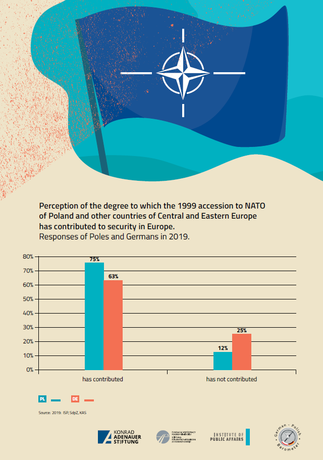 Zwanzig Jahre nach Polens NATO-Beitritt und fünfzehn Jahre nach dem Beitritt zur Europäischen Union bewerten die Polen diese Ereignisse für politische und wirtschaftliche  Stabilität in Europa sehr positiv. Ebenfalls die Mehrheit der Deutschen hat zu diesem Thema eine positive Meinung.