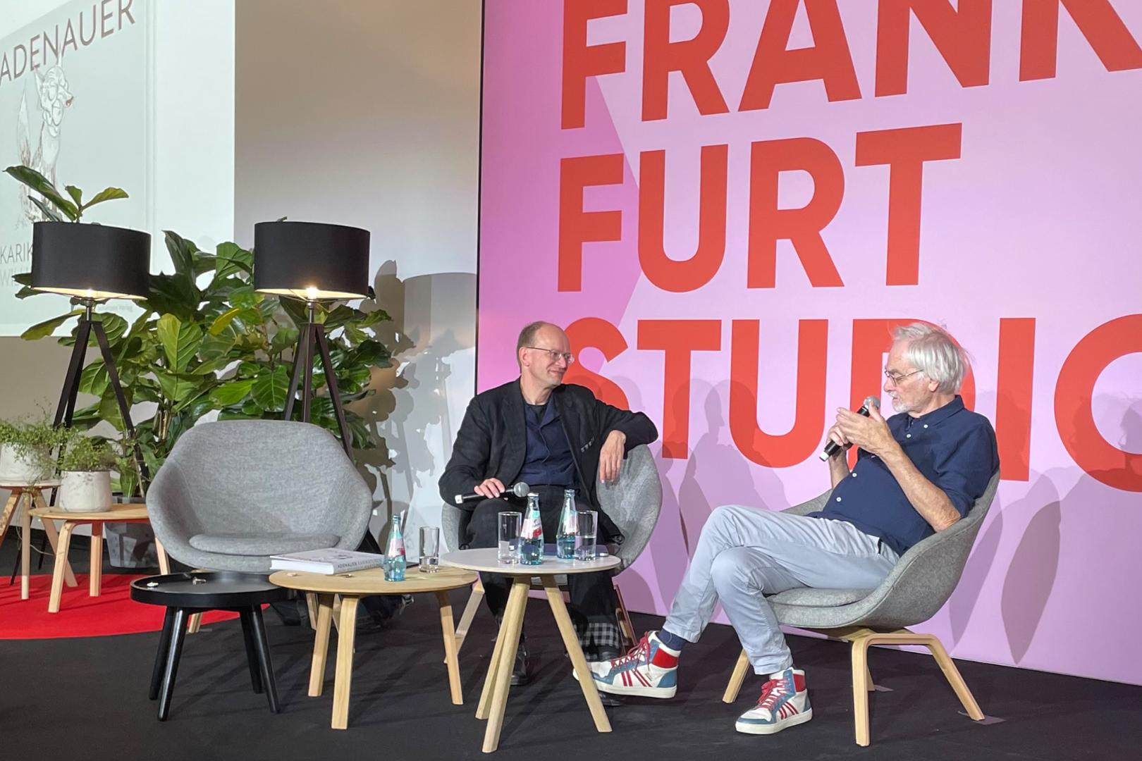 Aus Anlass des Erscheinens dieser Publikation fand im Herbst 2023 in Frankfurt a. M., Bad Honnef-Rhöndorf und Berlin eine dreiteilige Veranstaltungsreihe „Adenauers Spötter und ihre Erben“ statt. Im Rahmen moderierter Expertengespräche diskutierten dabei jeweils ein oder zwei Karikaturisten mit einem ausgewiesenen Kenner und Spezialisten über ihre Arbeit und Kunst, die Möglichkeiten und Grenzen politischer Bildsatire und die Gemeinsamkeiten und Unterschiede im Vergleich zur Adenauer-Zeit.Das erste der drei moderierten Expertengespräche fand am Erscheinungstag des Bandes auf und im Umfeld der 75. Frankfurter Buchmesse statt. Am Mittag diskutierte Andreas Platthaus, Chef des Ressorts Literatur und literarisches Leben beim Feuilleton der F.A.Z. und Autor mehrerer einschlägiger Sachbücher, auf einer Messebühne im Foyer von Halle 4.0 mit dem Karikaturisten Klaus Stuttmann, seit 2003 für den Berliner „Tagesspiegel“ tätig, daneben aber auch noch für über 30 andere Zeitungen und Zeitschriften.