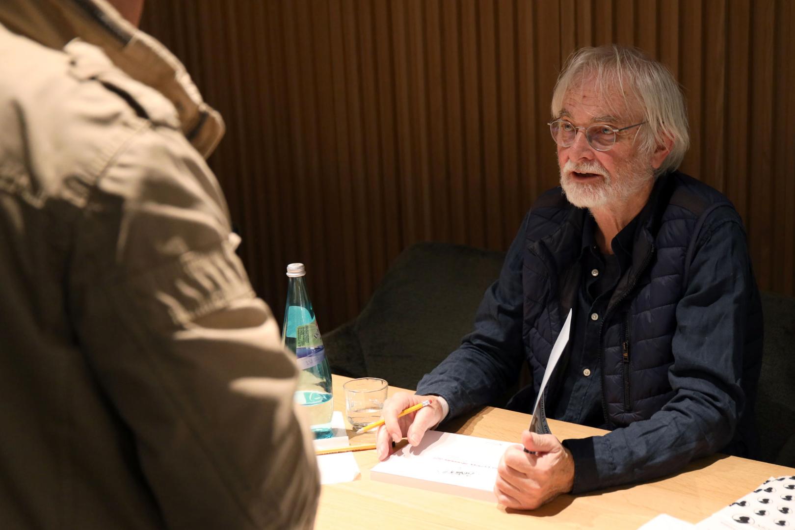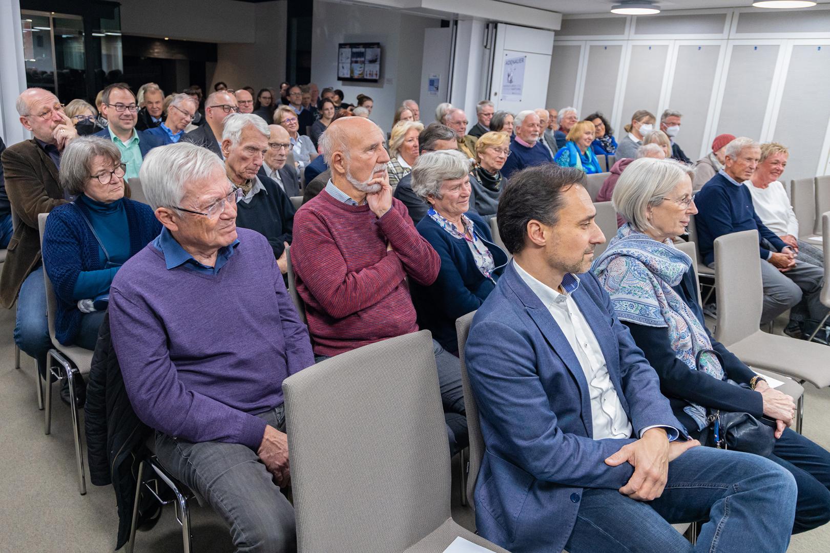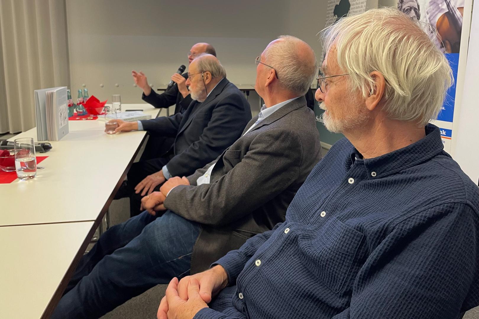 Das Podiumsgespräch und vor allem die menschlich-fachlichen Interaktionen zwischen den beiden Karikaturisten begeisterten die Teilnehmer der Veranstaltung. Zu den spannendsten Fragen, die der Moderator mit ihnen diskutierte, gehörten ihr individueller Werdegang und ihr Berufsweg zum satirischen Pressezeichner, die Entwicklung ihrer Arbeitsweise(n) und der politischen Karikatur als Genre zwischen 1947 und 2023 in Deutschland sowie die Folgen missliebiger Zeichnungen und thematischer Tabubrüche bis hin zur Begrenzung ihrer „Freiheit“ durch Chefredaktion und Verleger. Eindrucksvoll schilderte Schoenfeld, wie er durch seine Erfahrungen im Dritten Reich nach dem Krieg zu seinem demokratisch-politischen Engagement gekommen sei, und erzählte von seinem Studium der Malerei in Berlin, dem er noch ein paar Semester am dortigen Institut für Pressezeichnen und Graphik folgen ließ. Demgegenüber studierte der 21 Jahre jüngere Klaus Stuttmann Kunstgeschichte in Berlin und Tübingen. Zum Künstler habe es damals bei ihm nicht gereicht.