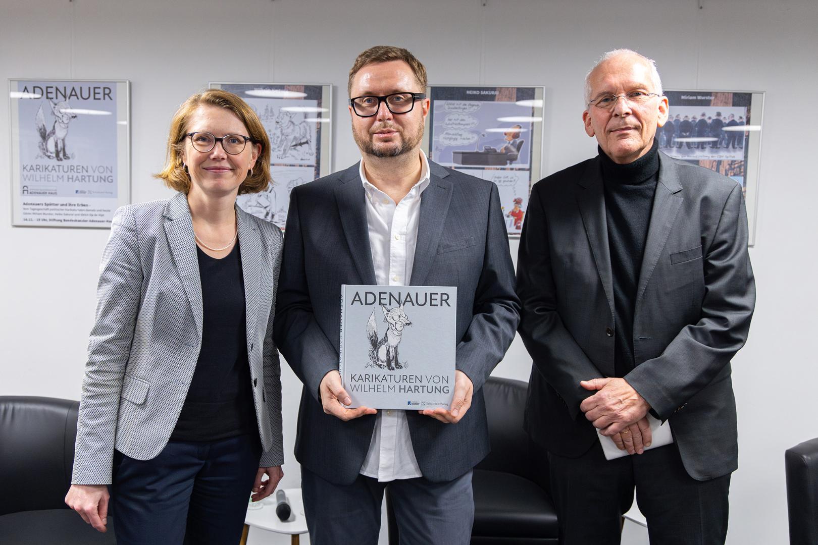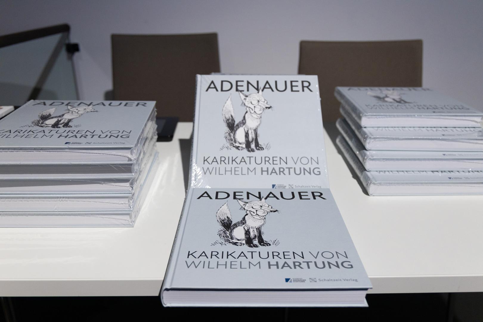Vor wenigen Jahren hat das Medienarchiv der Konrad-Adenauer-Stiftung aus dem Nachlass von Wilhelm Hartung, der von 1957 bis 1975 als politischer Karikaturist bei der „Welt“ tätig war, alle dort noch vorhandenen Adenauer-Karikaturen erworben. Eine Auswahl von rund 150 dieser Zeichnungen ist im Band „Adenauer-Karikaturen von Wilhelm Hartung“ veröffentlicht worden, der am 18. Oktober 2023 im Schaltzeit Verlag Berlin erschienen ist.