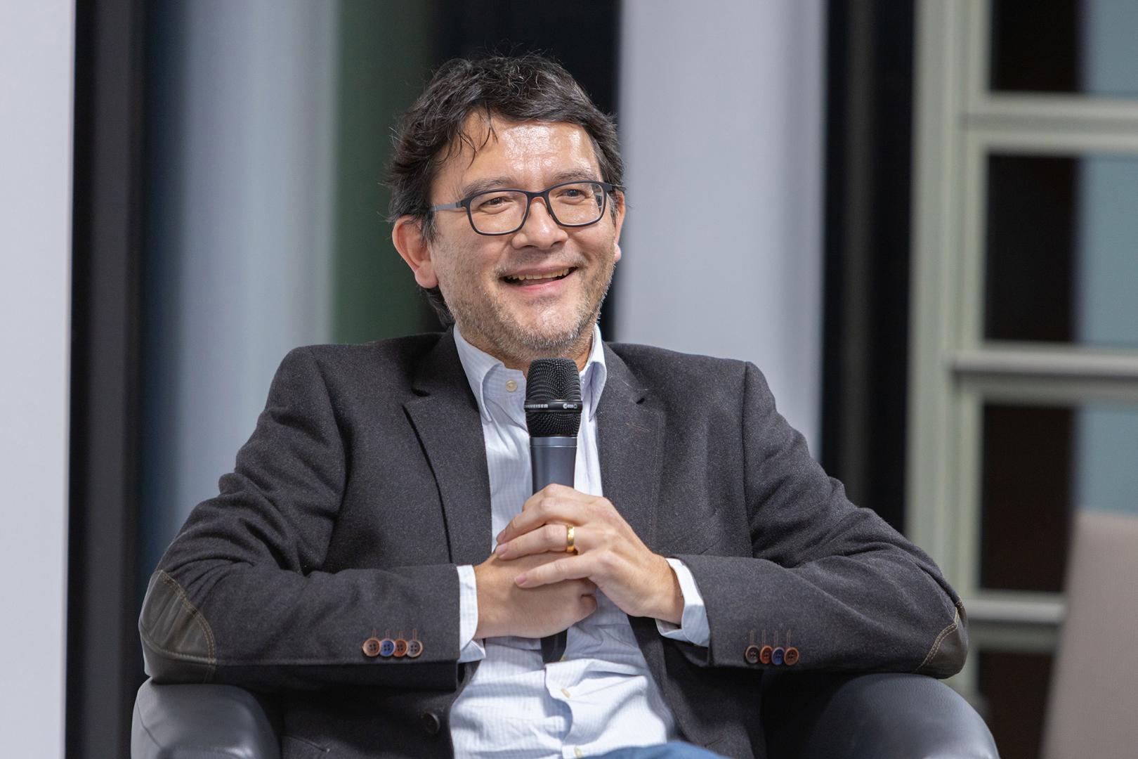 Auf Nachfrage gewährte Sakurai dann einige interessante Einblicke in seine Arbeitsweise. So biete er einer Zeitung immer gleich zwei oder drei Ideen an, so dass die zuständige Redaktion auswählen könne. Dabei sei die Idee für eine Karikatur das Entscheidende, nicht die Ausführung. In jedem Fall habe er „nur einen Schuss“, der durchaus auch daneben gehen könne, wenn die Zeichnung später nicht verstanden werde. Dafür müssten er und das Publikum denselben Horizont haben. Seine Vorzeichnungen mache er im Übrigen noch mit Stift und Papier, die Reinzeichnung mittlerweile aber mit dem Tablet. Die Abgabe der Karikatur erfolge bis 16 Uhr. Bis dahin könne eine Idee durch die veränderte Nachrichtenlage auch obsolet geworden sein. Deshalb sei es für ihn besser, fügte er augenzwinkernd hinzu, wenn ein Minister schon am Vormittag zurücktrete und nicht erst um 15 Uhr.