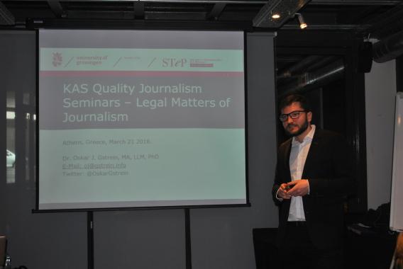 Η Αντιπροσωπεία του Ιδρύματος Konrad Adenauer στην Ελλάδα συνεχίζει και το 2018 τη δραστηριότητά της στον τομέα της Ποιοτικής Δημοσιογραφίας μέσω της διοργάνωσης σεμιναρίων. Στόχος, είναι να εφοδιαστούν κυρίως νέοι επαγγελματίες του χώρου και φοιτητές με τεχνικές γνώσεις σε νέους και επίκαιρους τομείς δημοσιογραφίας, αλλά και να θέσουν ερωτήματα γύρω από την ηθική και τρόπο συμπεριφοράς και λειτουργίας των δημοσιογράφων. Το συντονισμό των σεμιναρίων έχουν ο Λευτέρης Πετρόπουλος, επιστημονικός συνεργάτης στο Ίδρυμα Konrad Adenauer και η Ελίνα Μακρή, δημοσιογράφος.