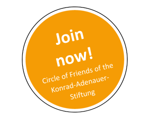 As a sponsor in the Circle of Friends, you support the Konrad-Adenauer-Stiftung’s work and enjoy a number of privileges. The regularly published friends’ letter will provide you with the latest information about particularly interesting events, seminars and workshops as well as forward-looking projects of the foundation. Upon request, you will receive individual informational material on domestic, foreign and socio-political topics covered by the Konrad-Adenauer-Stiftung. Larger foundation events afford you the opportunity to establish and maintain contact with other sponsors of the Circle of Friends via a special “meeting place”. You are a warmly welcome guest at concerts, readings, exhibitions and other cultural events held by the Konrad-Adenauer-Stiftung, and can participate in the Circle of Friends regulars’ tables in Berlin and Bonn.