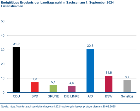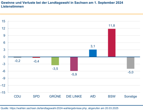 The election results in Saxony differ from those in Thuringia primarily due to the positive image of Minister President Michael Kretschmer and a better perception of the CDU. However, the basic parameters of the political mood are almost identical to the pessimistic mood in Thuringia.