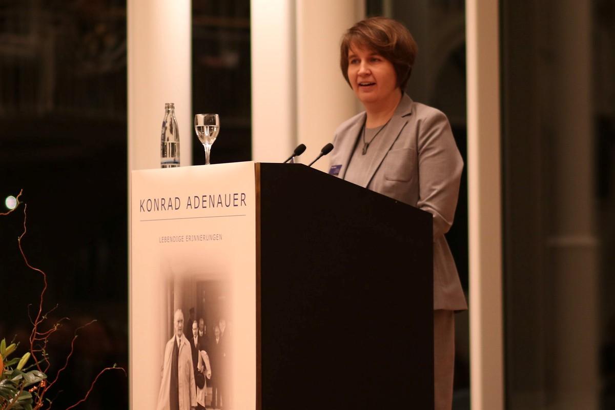 Nach einem kurzen Rückblick auf das Adenauer-Jahr 2017 stand der Ausblick auf die Aufgaben in den kommenden Monaten und Jahren im Mittelpunkt: „Mit Vertrauen in die Zukunft“ wolle die Konrad-Adenauer-Stiftung nun „ein nächstes Kapitel“ beginnen.