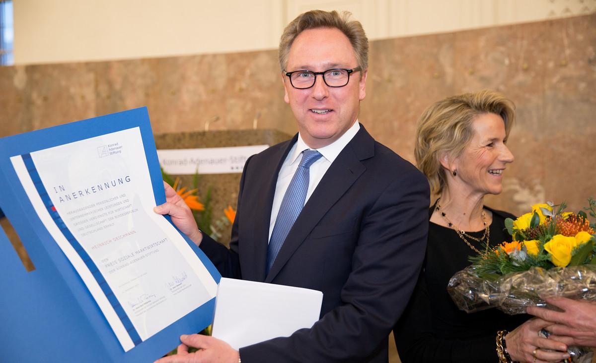 In seiner Dankesrede zeigte sich Heinrich Deichmann besonders erfreut darüber, dass neben ihm auch seine Familie und das Unternehmen als Ganzes gewürdigt wurden. „Mein Vater war mir stets Vorbild, denn er verstand sein Unternehmen als Dienst am Menschen.“ Er selbst sei ein überzeugter Anhänger der Sozialen Marktwirtschaft, denn sie sei die „relativ beste Wirtschaftsordnung in einer Welt der Sünder“. Ihr liege kein altruistisches Menschenbild zugrunde, sondern vielmehr verbinde sie das Streben des Einzelnen nach Nutzenmaximierung mit Wettbewerb untereinander zum Nutzen aller.