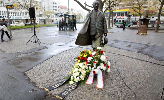Anfangs als Gesellschaft für christlich-demokratische Bildungsarbeit gegründet, wurde die CDU-nahe Stiftung bereits 1965 in Konrad-Adenauer-Stiftung umbenannt. Für den stellvertretenden Leiter der Hauptabteilung Politische Bildung und Leiter der Bildungsforen, Andreas Kleine-Kraneburg, eine gute Entscheidung, stehe der Name der Stiftung für die Politik und Werte Konrad-Adenauers, die noch heute das Leitbild für die politische Arbeit weltweit seien. Stefan Evers, Generalsekretär und stellvertretender Fraktionsvorsitzender der Berliner CDU, würdigte anschließend Konrad Adenauer als einen Persönlichkeit, dem es die Menschen heute zu verdanken haben, hier miteinander in Frieden und Freiheit zu leben. Nach kurzen Ansprachen von Kleine-Kraneburg und Evers vor der Statue Adenauers legten sie Kränze nieder und gedachten in einem stillen Moment eines großen Politikers.