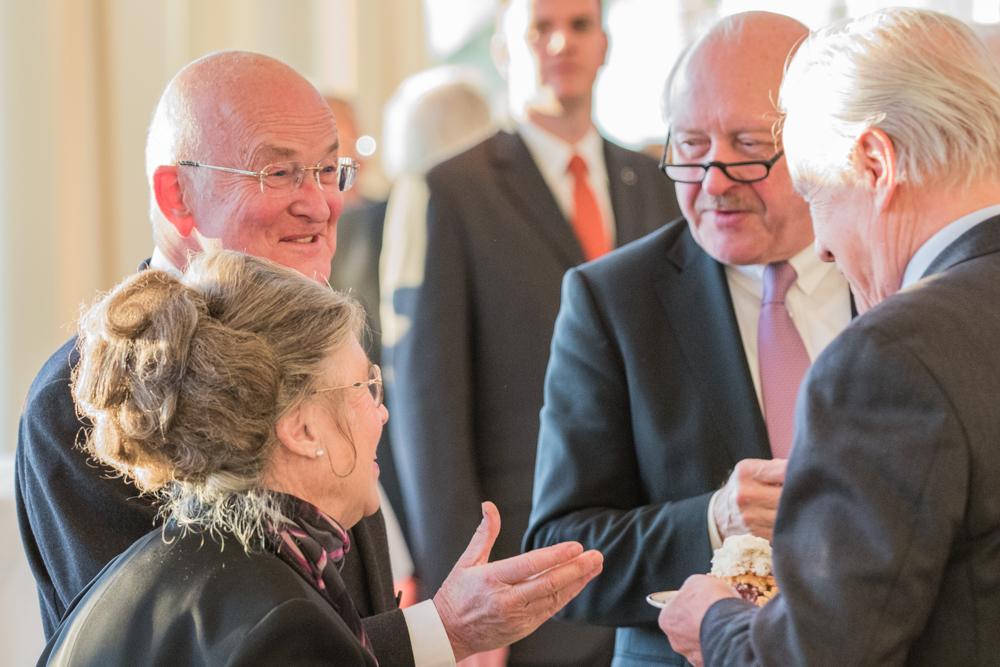 Prof. Dr. Karl-Rudolf Korte, Professor für Politikwissenschaft und Direktor der NRW School of Governance an der Universität Duisburg-Essen, fragte in seiner Rede, wie viel Adenauer heute noch in der CDU stecke und verglich die „Adenauer-Union“ mit der „Merkel-Union“. Dabei benannte er sieben Annäherungen zu den Gemeinsamkeiten zwischen den Parteivorsitzenden Konrad Adenauer und Angela Merkel.