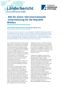 Am 5. April 2022 fand in Berlin die internationale Geberkonferenz "Hilfsplattform für die Republik Moldau" statt, die von Deutschland, Frankreich und Rumänien gemeinsam organisiert wurde und an der sich 47 Teilnehmerländer beteiligten. Vertreter von Mitgliedstaaten der Europäischen Union, des Vereinigten Königreichs von Großbritannien und Nordirland, der Vereinigten Staaten von Amerika, Kanadas, Japans sowie von Finanzinstitutionen und internationalen Organisationen waren nach Berlin gekommen.