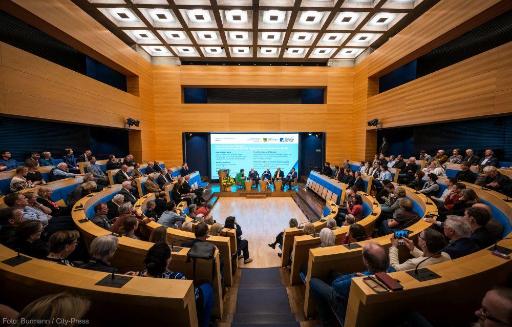 Einigkeit herrschte auf dem Podium darüber, dass der Wiederaufbau der Ukraine nur gelingen könne, wenn postsowjetische Strukturen abgebaut und echte lokale Selbstverwaltungen etabliert würden. Subsidiarität müsse den "sowjetischen Zentralismus" ablösen, um den Menschen Perspektiven und eine Rückkehr zur Normalität zu ermöglichen. Dabei seien verlässliche Ansprechpartner, Investitionsgarantien und langfristiges Engagement der internationalen Gemeinschaft – insbesondere auch deutscher Unternehmen – unverzichtbar.