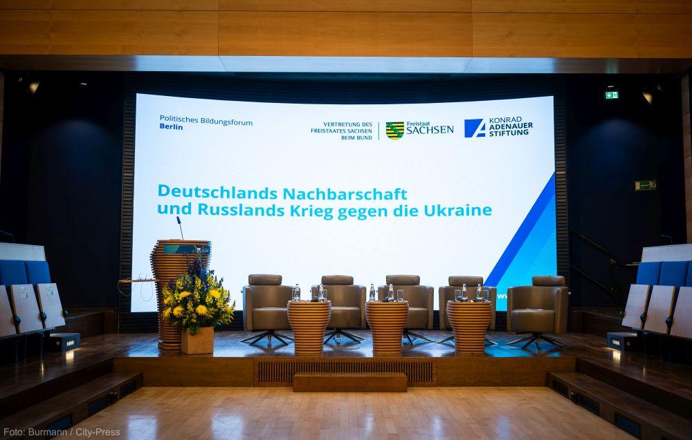 Am 22. Mai 2025 fand in der Akademie der Konrad-Adenauer-Stiftung in Berlin eine hochkarätig besetzte Kooperationsveranstaltung der Konrad-Adenauer-Stiftung mit der Landesvertretung des Freistaates Sachsen statt. Im Mittelpunkt stand die Frage, wie sich die Ukraine im Kontext des russischen Angriffskrieges und der europäischen Integration behaupten kann und welche Rolle Deutschland und Europa dabei spielen.