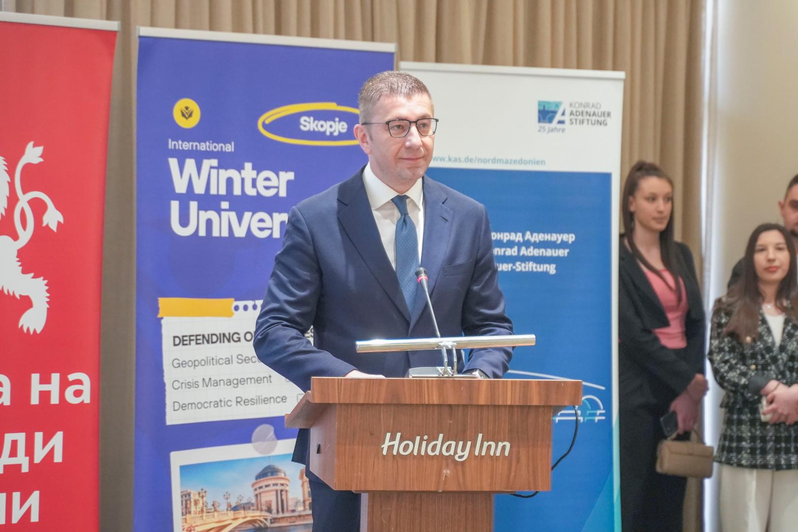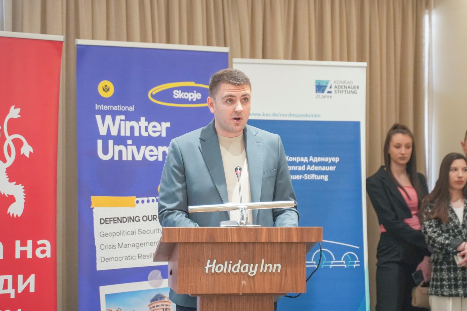 Afterwards, the EDS Winter University Council officially started with over 70 participants from 25 countries. The opening was marked by addresses on the topic “The Future of Europe and the Role of Democratic Leadership”, delivered by Daniel Braun, Sergej Popov and the President of the Government, Hristijan Mickoski. In their speeches, they emphasized the need for strong leadership, a clear political vision and an active role of young people in shaping the future of Europe.