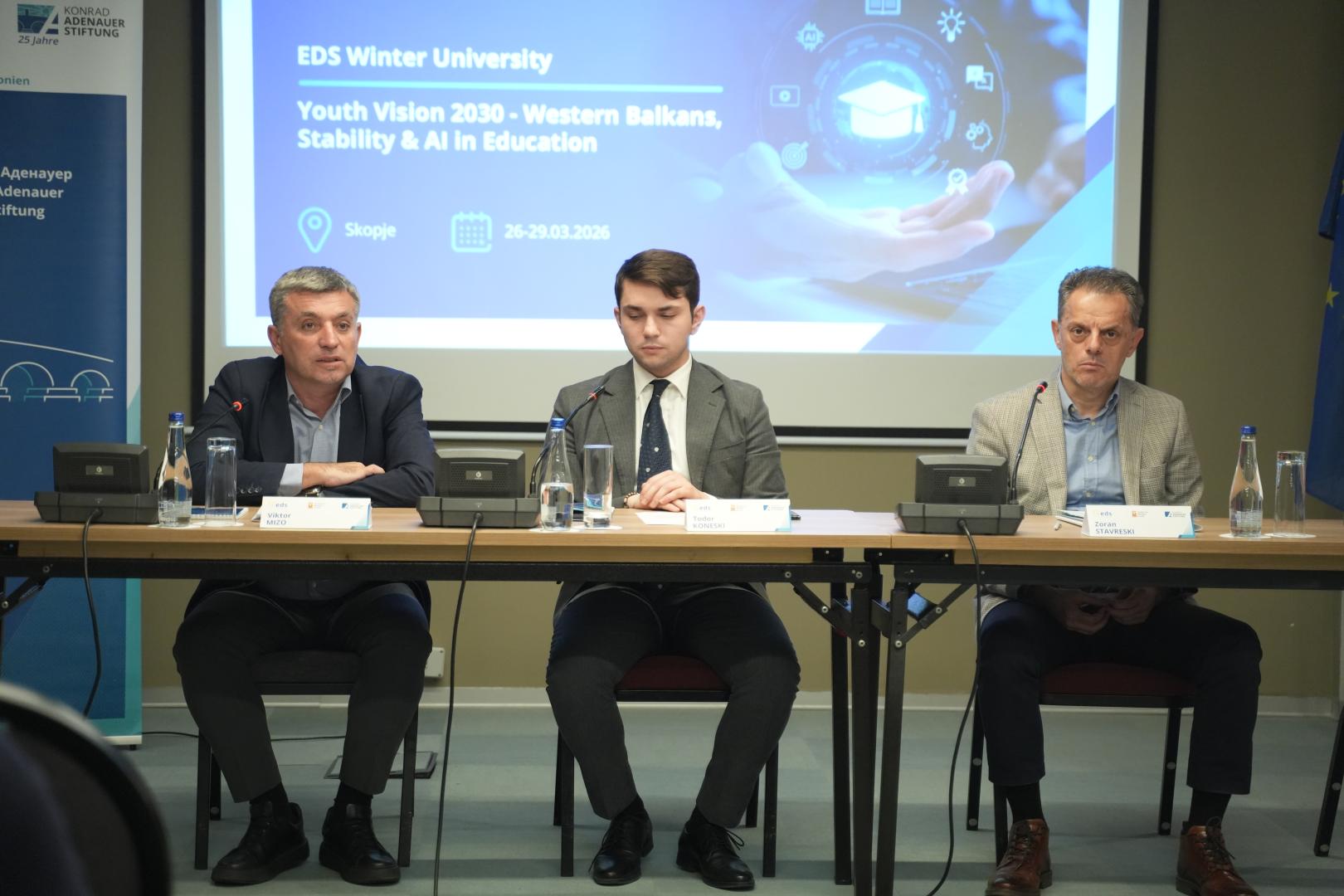 The official opening took place on 27 March, setting the key thematic and political directions of the event. During the opening, Daniel Braun, Official representative of the Konrad-Adenauer-Stiftung, Sergej Popov and Aleksandar Nikoloski, Deputy President of the Government and Minister of Transport, addressed the participants. In their speeches, they emphasized that Europe is at a crossroads, facing geopolitical uncertainty, accelerated technological transformation and an increased need for enlargement. Particular emphasis was placed on the European integration of the country and the region as a strategic imperative for ensuring the stability of Europe. Additionally, the role of artificial intelligence, especially in education, was highlighted as a significant opportunity, but also as a responsibility that requires vision, careful management and strong political leadership.
