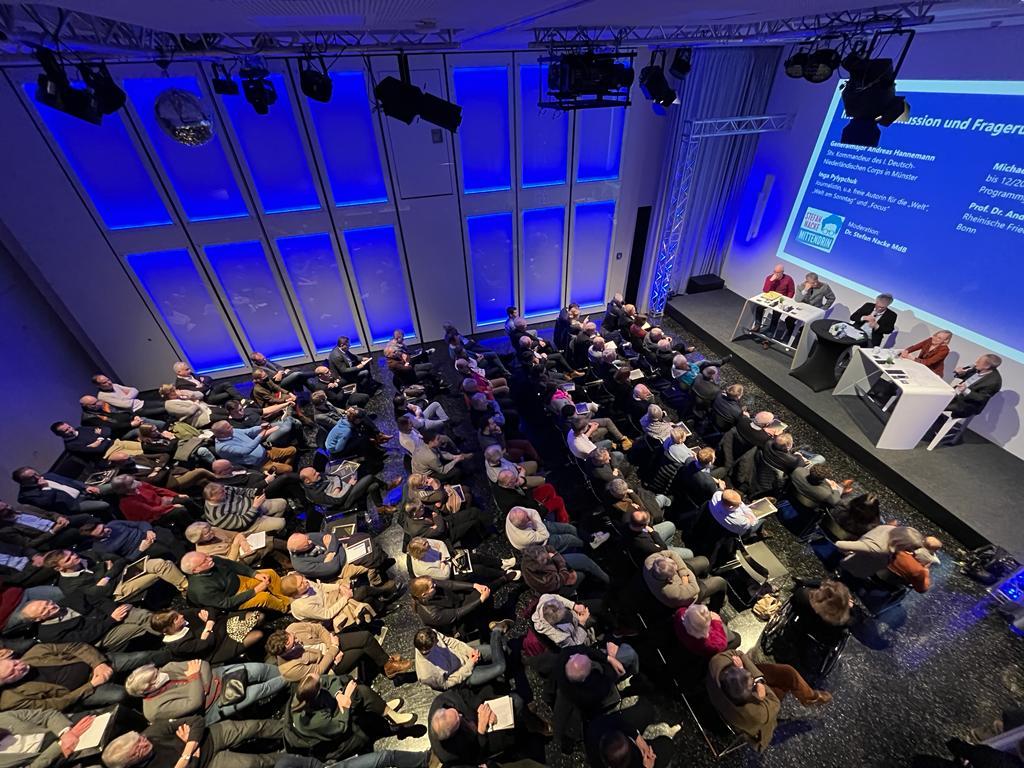Generalmajor Andreas Hannemann warb um Verständnis für die Meinungsbildung in den demokratisch legitimierten Staaten der westlichen Werte- und Bündnisgemeinschaft über Reaktionen und politische Entscheidungen. Dies sei der Preis der Freiheit, aber wenn die Bevölkerung überzeugt worden sei, sei niemand so gut im Mobilisieren von Reserven wie Demokratien. Für die NATO liege Plan A in der Abschreckung, Plan B sei Gewinnen. Die Zeitentwende und das damit verbundene Beschaffungswesen in der Bundeswehr seien angestoßen, ob politischer Wille bei der Beschleunigung unterstütze, bleibe abzuwarten. Die NATO habe sich seit 2015 wieder auf Landes- und Bündnisverteidigung ausgerichtet.