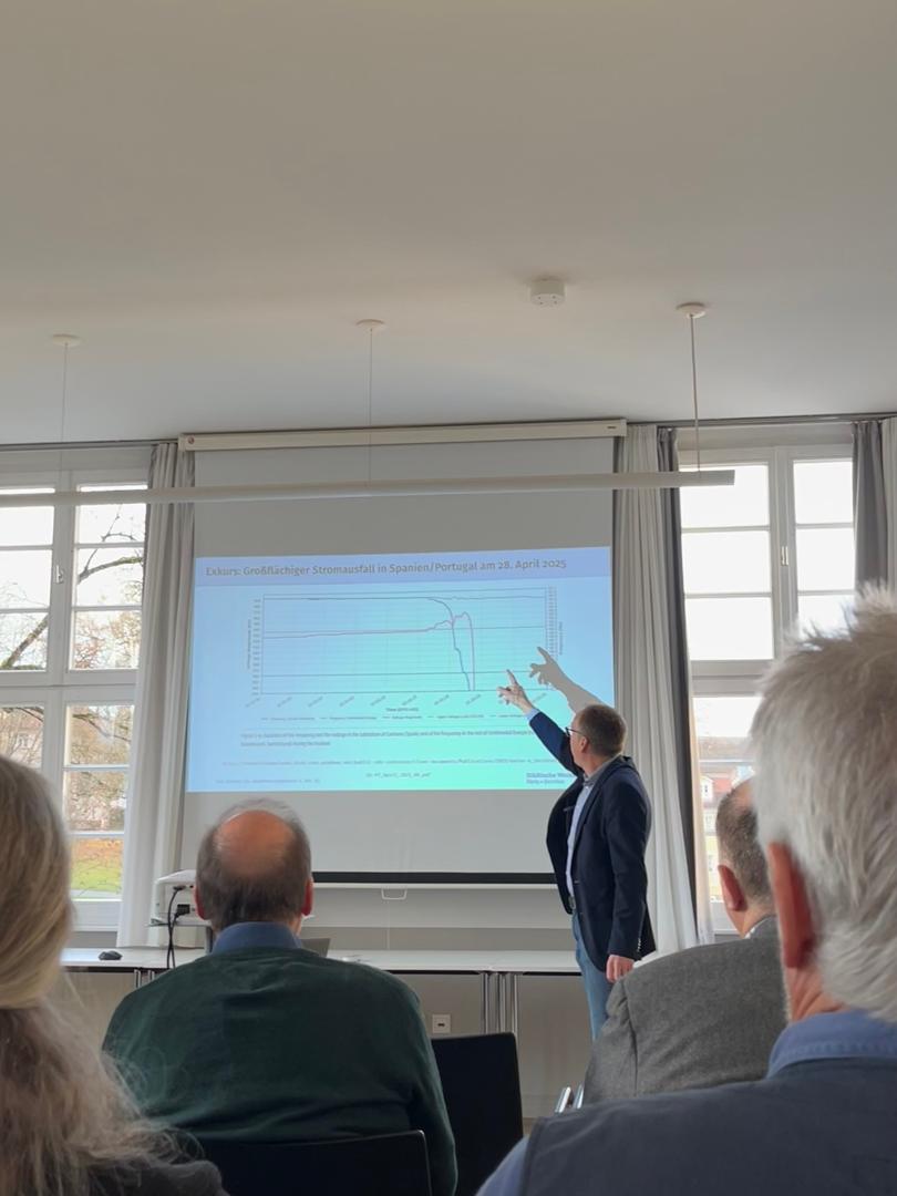 Dipl.-Ing. Weldner betonte, dass es unmöglich sei, alle Anlagen vollständig zu schützen. Zudem stünden Energieversorger vor strukturellen Problemen: Ersatzteile, Fachpersonal und Redundanzen seien begrenzt, während regulatorische Vorgaben oft Effizienz über Resilienz stellten. Politik und Gesellschaft müssten daher realistisch definieren, welches Schutzniveau notwendig und finanzierbar sei. Insgesamt, berichtete der Referent,sei Deutschlands Stromnetz aber sehr sicher.