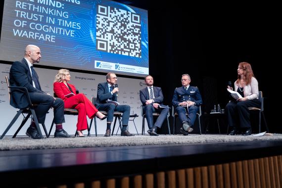 In der Diskussion unter der Moderation von Prof. Dr. Natascha Zowislo-Grünewald, Kommunikationswissenschaftlerin an der Universität der Bundeswehr München, betonten die Diskutantinnen und Diskutanten, dass Demokratien keine passiven Opfer kognitiver Angriffe sind. Vielmehr können sie aktiv Resilienz aufbauen und sogar strategische Vorteile entwickeln. „Das Wichtigste für mehr Resilienz ist Vertrauen in Institutionen, Medien und demokratische Prozesse“, hob Admiral Vandier hervor. Die Mitgliedstaaten haben sich bereits im Nordatlantikvertrag dazu verpflichtet, diese freien Institutionen zu stärken. „Wir müssen dieses Vertrauen wieder aufbauen!“
