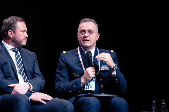 Admiral Pierre Vandier, Oberster Alliierter Befehlshaber für Transformation der NATO, brachte die militärische Perspektive ein. In seinem Kommando wurde erstmals ein NATO-Konzept für kognitive Kriegsführung erarbeitet. Ein Umdenken sei notwendig: „Wir sind Opfer unserer eigenen Definition von Frieden. Wir dachten, wir lebten nach Ende des Kalten Krieges in Frieden“. Das sei aber nicht der Fall gewesen. Kognitive Kriegsführung ist nicht neu, sie ist im Gange. Russland versuche auch heute ständig die Linie zu überschreiten. Mit den Drohnenflügen in NATO-Gebiet werde versucht, den Menschen den Eindruck zu verleihen, dass die Grenzen nicht sicher und sie nicht geschützt seien.