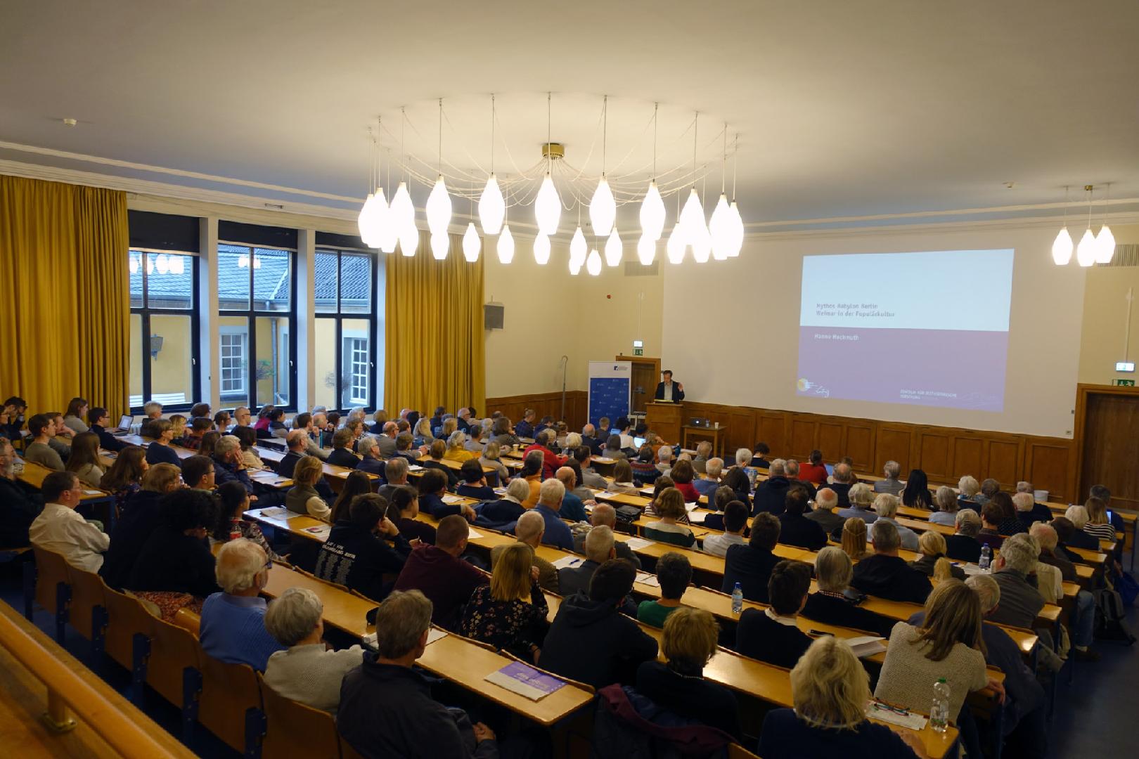 Unsere Ringvorlesung erfreut sich großen Zuspruchs. Glücklicherweise konnten wir in einen größeren Hörsaal ausweichen. Sie finden uns montags zwischen 18.15 und 19.45 Uhr in Hörsaal IX im Hauptgebäude der Universität Bonn. Sie sind herzlich eingeladen, an weiteren Terminen teilzunehmen.