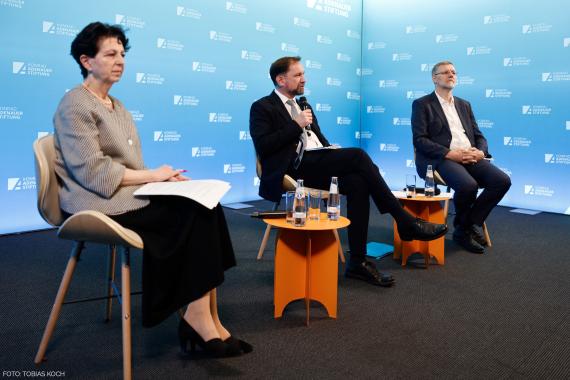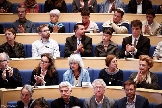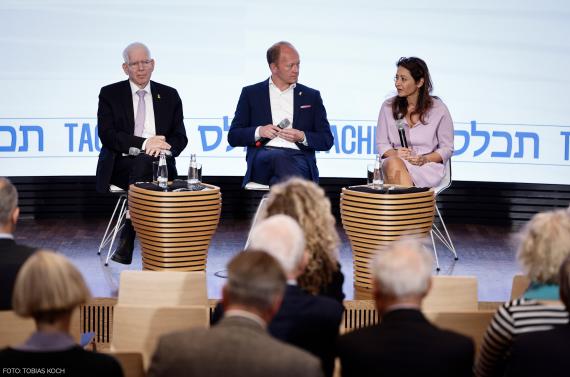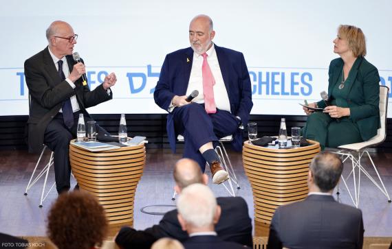 At the closing panel, Prof Dr Norbert Lammert welcomed the Ambassador of Israel to Germany, Ron Prosor, on behalf of the former President of Israel, Reuven Rivlin, who was unable to come to Berlin due to illness. In a short video message, Reuven Rivlin emphasised that antisemitism is not something that is only directed against Jews, but against humanity. Therefore: ‘Never again is now!’ Ron Prosor then gave a keynote speech. He made it clear that Israel has been ‘in a post-trauma’ since 7 October. He emphasised that commitments to Israel's security should not remain empty words. The ambassador and our Chairman then debated in a discussion moderated by journalist Anke Plättner. Lammert spoke in favour of supporting the reconstruction of Gaza, but only if there is a peace order beforehand. Ron Prosor demanded: ‘The only side that Germany can stand on is Israel's - this must be put into practice even more.’