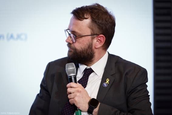 How widespread is antisemitism in the cultural sector and at German universities? In the second panel, Joe Chialo, Senator for Culture and Social Cohesion of the State of Berlin, Hanna Esther Veiler, President of the Jewish Student Union Germany, Johannes Ebert, Secretary General of the Goethe Institute, and Deniz Yücel, journalist and publicist, posed this question under the moderation of Remko Leemhuis, Director of the AJC Berlin. ‘A city like Berlin, which is a space for freedom, has become more of a space for pain,’ Joe Chialo stated. He himself has been targeted by pro-Palestinian activists for many weeks. Recently, his private residence was smeared with calls for violence. Hanna Esther Veiler also reported: ‘The question of whether I have a future here as a young Jewish person has been asked more and more since October 7th. At the same time, she called for more solidarity: ‘Jews cannot fight this battle alone.’ The antisemitism clause, which was promoted by Joe Chialo, was discussed controversially: ‘Taxpayers’ money must not be made available to anti-democrats,’ Chialo emphasised. Welt journalist Deniz Yücel, who is also a co-spokesperson for Pen Berlin, emphasised the need for ‘a precise inventory of where problems exist, for example at universities’. However, he does not share the view that ‘the cultural sector is silent’, as many clear statements were made early on. Johannes Ebert, Secretary General of the Goethe-Institut, brought a global perspective to the discussion. For him, one of the Institute's main tasks is to continue the dialogue. Germany's position in this situation must be explained. It is also necessary to talk to people who see Israel and Germany differently than we do. Ebert also spoke out against an antisemitism clause, which would only lead to uncertainty among institutions locally and abroad.