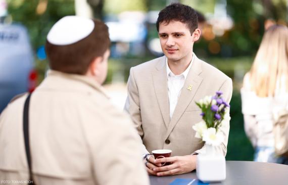 In addition to the panel discussions, various thematic and interactive workshops took place. There were also various cultural activities. In a graffiti workshop, pupils from the Moses Mendelssohn Jewish High School worked with Mark Marquardt (‘Akte One’) to design a canvas with hopes and wishes for the future on the topic of antisemitism, which they then presented in the academy.