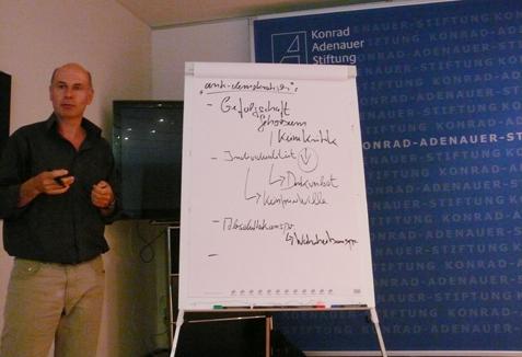 The Konrad-Adenauer-Stiftung, its educational institutions, centres and foreign offices, offer several thousand events on various subjects each year. We provide up to date and exclusive reports on selected conferences, events and symposia at www.kas.de. In addition to a summary of the contents, you can also find additional material such as pictures, speeches, videos or audio clips.