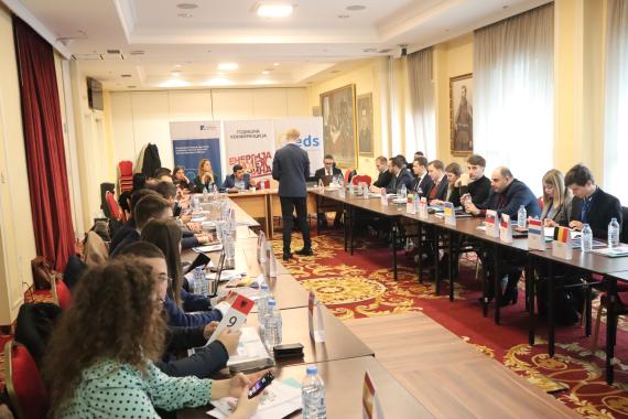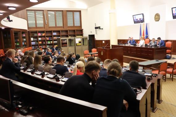 The second day started with an organized visit to the Macedonian Assembly and a meeting with the MPs Antonio Miloshoski, President of the Foreign Policy Committee and with the representatives of the Club on Youth Affairs and Policies of the Assembly Jovan Jauleski, Marija Petrushevska and Bojan Stojanoski. At this meeting, the participants discussed the foreign policy, the EU perspectives of the countries of the Western Balkans region, as well as the Action Plan of the Club on Youth Affairs and Policies and the participation of the youth in the decision-making process.