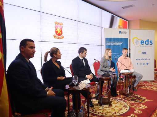 The event was opened with welcoming addresses by the Official representative of the KAS, Daniel Braun, who emphasized the importance of the unity of the youth of the European People's Party during the great geopolitical challenges with which the whole Europe is facing. The vice-presidents of VMRO-DPMNE, Aleksandar Nikoloski and Timco Mucunski as well as the Secretary General of the EDS, Ivan Botoucharov and the President of the UMS, Sergej Popov, gave introductory speeches, where they welcomed the delegates to Skopje and wished them successful work.