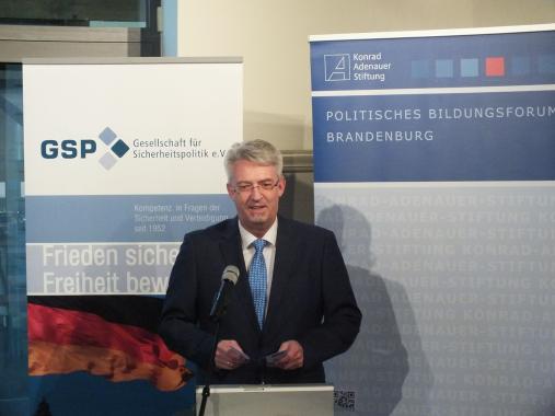 Dass der neue Präsident der USA große Aufmerksamkeit auf sich zieht, zeigte sich einmal mehr beim ersten Forum „Politik & Sicherheit“ in diesem Jahr in Potsdam am 3. April. Über 120 Teilnehmer sorgten im Le Manège am Neuen Markt für einen vollen Saal.
