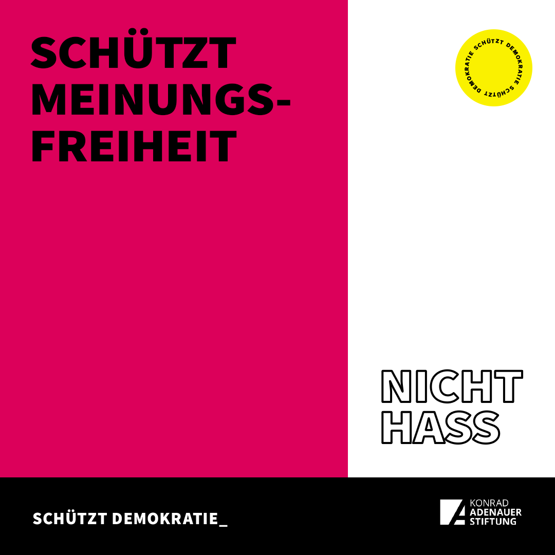 Demokratie braucht Demokraten, die sie beschützen, denn die Demokratie schützt wiederum ihre Bürgerinnen und Bürger. Unter dem Motto „Demokratie schützt. Schützt Demokratie“ wird dieser Themenkomplex auf den sozialen Kanälen der Stiftung aufgegriffen. Auf Twitter, Instagram, LinkedIn und Facebook wollen wir Menschen in Deutschland das Schützenswerte unserer Demokratie zeigen und gleichzeitig zum aktiven Schützen der Demokratie aufrufen. Zudem wird die Kampagne auch hörbar sein: Auf dem Audio-Streamingportal Spotify werden Werbe-Jingles zwischen den Audioprodukten platziert.