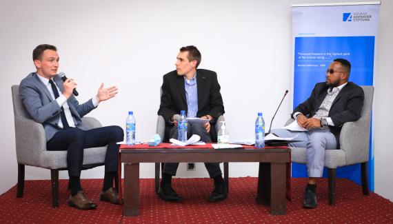 The first panel, which focused on practical examples of youth inclusion from selected countries, brought together Mr. Abiy Hailemelekot, Youth Advocacy Senior Expert at the FDRE Ministry of Women and Social Affairs, and Mr. Jakob Kerstan, KAS Country Representative in the DR Congo who heads the EU co-funded youth project ‘Great Lakes Youth Network for Dialogue and Peace’ in the Great Lakes region in Central Africa.