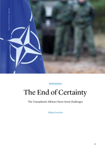 In addition to the difficulties outlined here with respect to coordination and burden-sharing within the alliance, NATO continues to be faced with the task of demonstrating its effectiveness in dealing with external challenges. As mentioned at the beginning of this article, multilateralism is not an end in itself, but must be measured by its effectiveness at solving concrete problems. In the future, NATO will have to find ways of meeting a number of global challenges if it is to retain its relevance as an effective alliance.