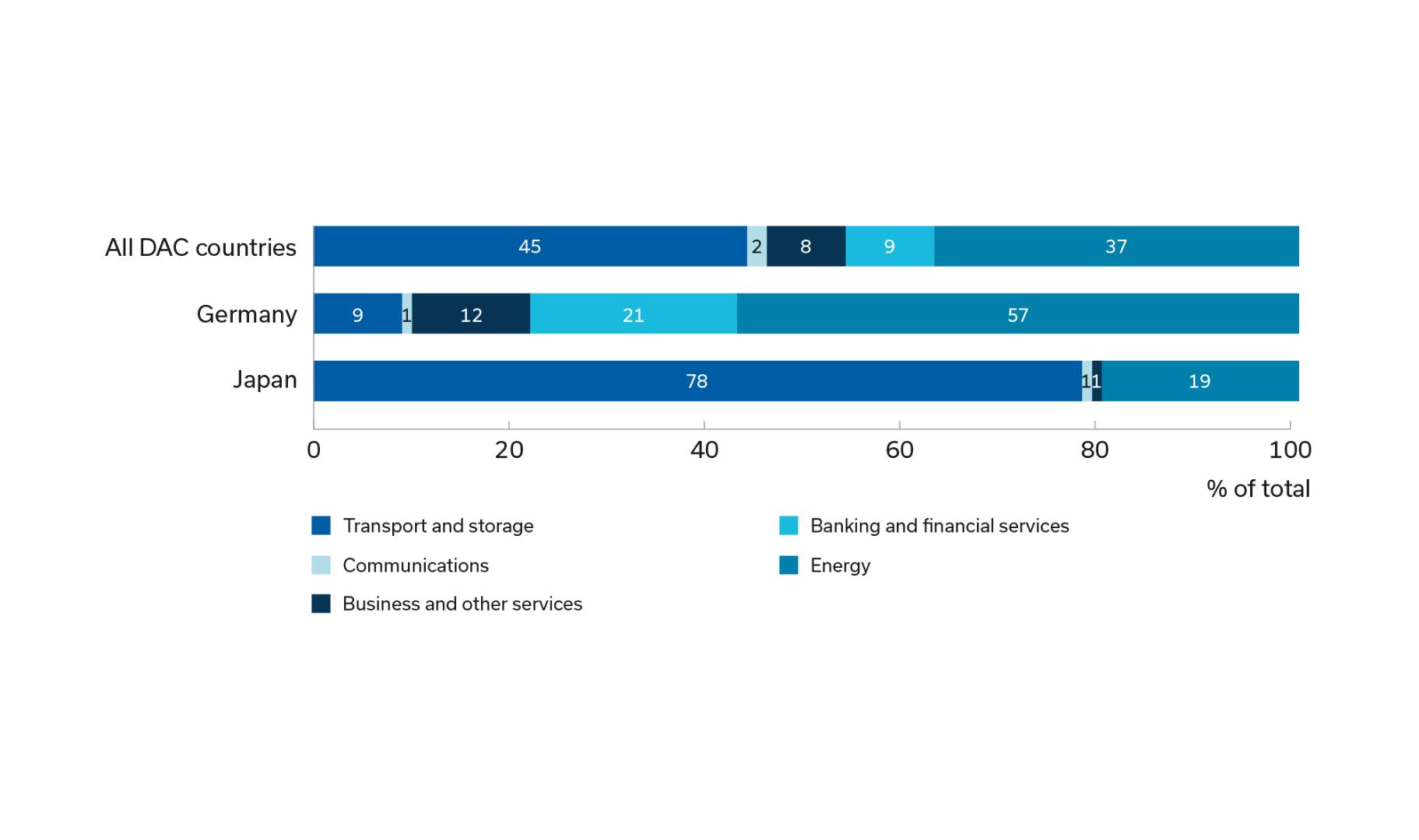 While Germany devoted by far the largest share of its ODA in this category to energy projects, Japan prioritized “transport and storage”, which accounted for nearly 80 per cent of its spending in this sector in 2023 (see figure 5). By contrast, Germany allocated just nine per cent to this area, which was well below the DAC average.