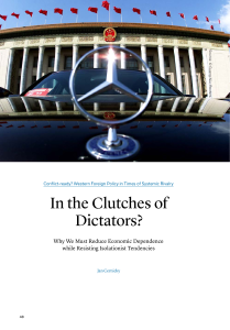 As long as it is not compelled militarily, and thus becomes robbery, trade is always economically advantageous in the medium term – otherwise the partners involved would not engage in it. On average, trade with authoritarian states is actually particularly lucrative: since it involves higher risks for the companies involved, they engage in it only when profits are correspondingly high. Trade therefore always implies risks as well as economic gain. The greater the risk of a business deal collapsing, the greater the profit if it succeeds. The risk of dependency on authoritarian states is attracting great attention in current debates. How serious is the risk in reality, and what is the best way to react to it?