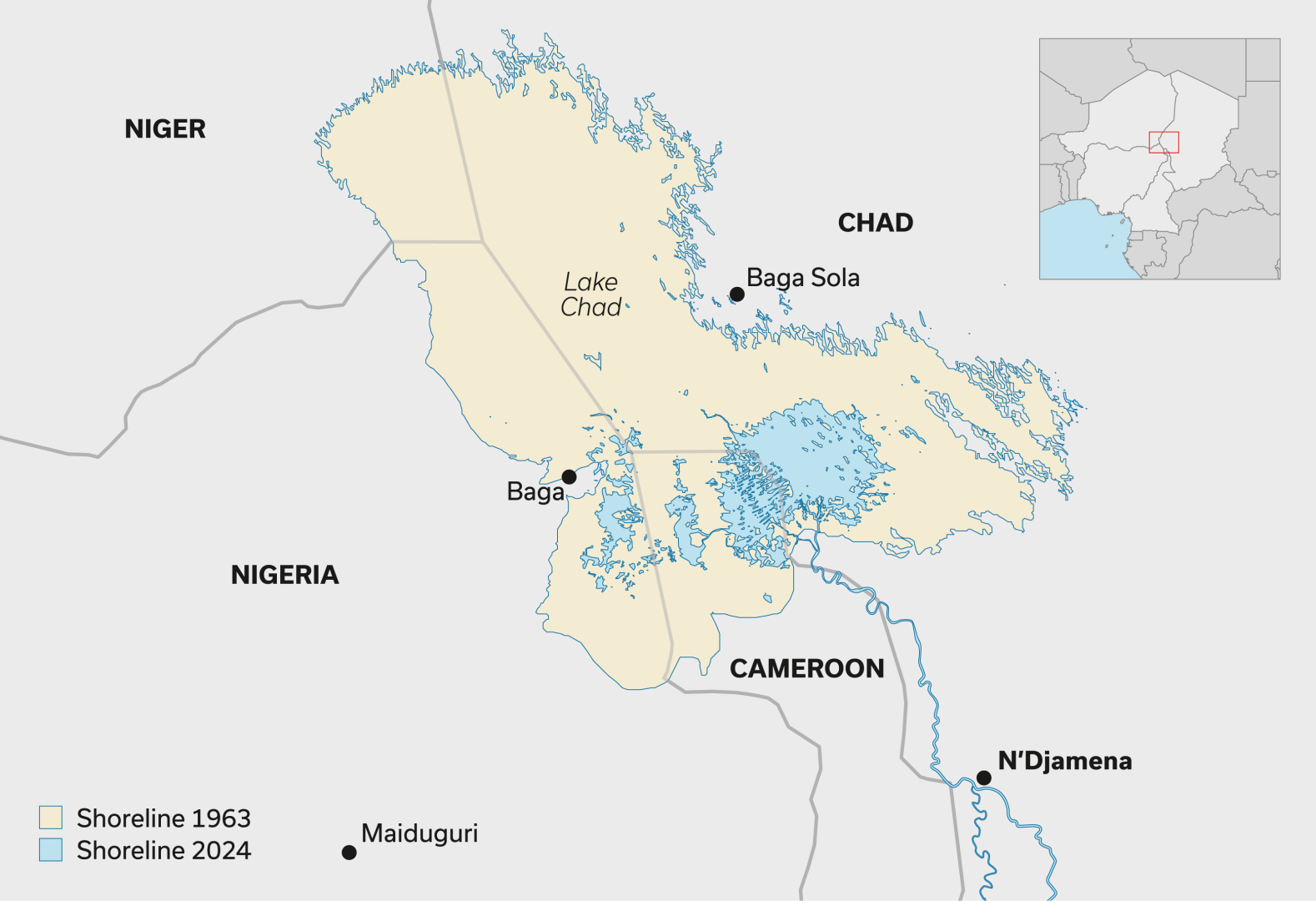 Fig. 1: Extent of Lake Chad: 1963 and 2024