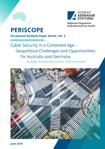 Australia and Germany share similar challenges and approaches in this field. Questions at the forefront of policy-making debate query how governments can keep up with technology industry innovation that often out paces, if not drives, military adaptation. How can deterrence and attribution be used effectively – from a national security perspective – against a backdrop of societies that seek to be increasingly anonymous and where privacy legislation, such as the GDPR (General Data Protection Regulation), has global implications for governments and the private sector alike? At the same time, the two countries’ cyber security strategies also differ on a number of aspects; in this way, to compare and contrast approaches can be fruitful for gaining a deeper understanding of the problem-set and what can be done about it. Ultimately, the analysis paper will demonstrate that in order to effectively manage and mitigate within a cyber ecosystem, a combination of political leverage, diplomacy, dialogue and deterrence is required in order to safeguard State sovereignty.