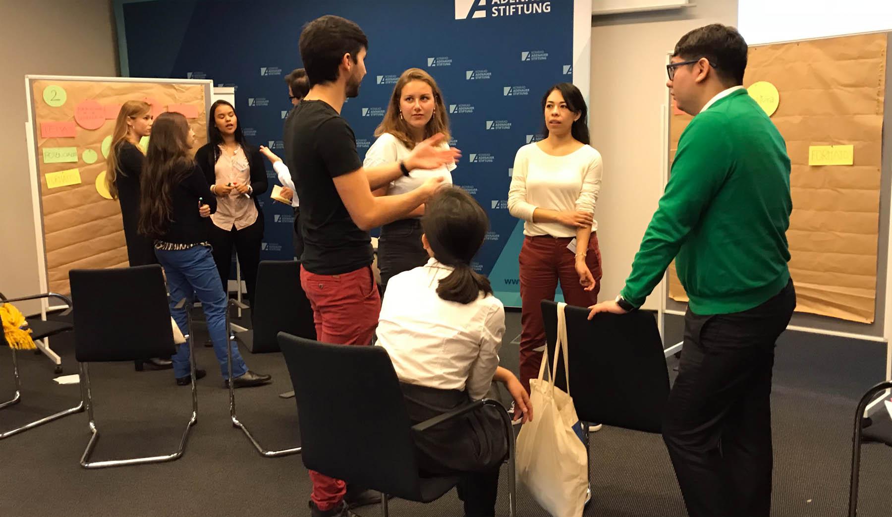 Vom 8. bis 9. November 2018 fand in der Akademie der Konrad-Adenauer-Stiftung ein Treffen mit Stipendiatinnen und Stipendiaten aus ganz Lateinamerika, die derzeit in Deutschland studieren, statt. Das Treffen stand unter dem Thema: „Wandel verstehen. Zukunft gestalten.“ und bot Stipendiaten und Mitarbeitern der Konrad-Adenauer-Stiftung die Gelegenheit zum gegenseitigen Kennenlernen und Erfahrungsaustausch. Insbesondere erhielten die Studierenden und Promovierenden Einblicke in die Arbeit der Hauptabteilung Europäische und Internationale Zusammenarbeit der KAS.