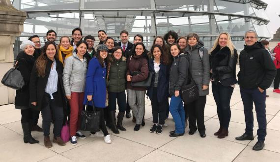 Anschließend beleuchtete Lukas Lingenthal, Referent der Stabsstelle Strategie und Planung (KAS), die Rolle der KAS im Spannungsverhältnis zwischen gesellschaftlichem und politischem Wandel in Deutschland. Henning Speck, Referent für Sicherheits- und Außenpolitik der CDU/CSU Fraktion empfing die Stipendiaten im Bundestag und gab einen Einblick in die Lateinamerikapolitik der Bundesregierung. Den Abschluss des Treffens bildete die “Europa-Rede 2018”, in der Prof. Dr. Koen Lenaerts, Präsident des Europäischen Gerichtshofs, sich zur Idee und zur Lage Europas äußerte; hierbei betonte er besonders die Rolle junger Europäer.