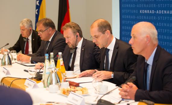 Neben wirtschaftlichen Themen standen vor allem die europäischen Zielvorgaben für die EU-Annäherung, die Veröffentlichung der Ergebnisse der umstrittenen Volkszählung und die Umsetzung der Reformagenda im Vordergrund des Rundtischgesprächs. Am 15. Februar 2016 hatte Bosnien und Herzegowina ein EU-Beitrittsgesuch in Brüssel eingereicht. Das Land hat zwar insbesondere in der zweiten Jahreshälfte 2015 erhebliche Fortschritte gemacht und beispielsweise eine unpopuläre Arbeitsrechtsreform umgesetzt. Dennoch sind weiterhin große Reformanstrengungen notwendig, um mittelfristig EU-Beitrittskandidatenstatus zu erlangen. So besteht beispielsweise weiterhin auch innerhalb des Staatspräsidiums keine Einigkeit über die Anpassung des Stabilisierungs- und Assoziierungsabkommens mit der EU. Von den deutschen Vertretern wurde die Notwendigkeit politischer Führung und Geschlossenheit des Staatspräsidiums unterstrichen. Es wurde gemahnt, dass das Gemeinwohl über Partikularinteressen und wahltaktischen Überlegungen stehen müsse.