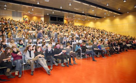 Ein evangelischer Pfarrer, eine türkischstämmige Menschenrechtlerin, der Vorsitzende eines Studentenverbands und ein Vertreter des Verfassungsschutzes sitzen in der Universität, um zu diskutieren… Man sollte meinen, ein solch ausgewogen besetztes Podium zur Diskussion über das „Flüchtlingsland Deutschland“ läge in jedermanns Interesse. Doch leider kam es anders.