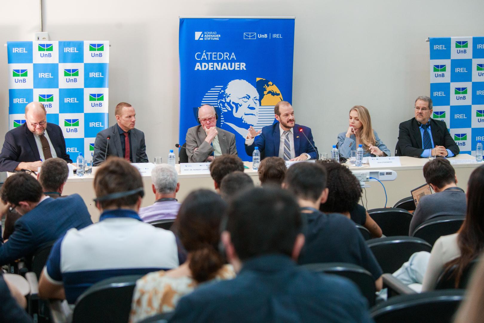 Zur Einweihung des Lehrstuhls wurde ein Seminar mit dem Titel „Zwischen liberalen und autoritären Systemen – Herausforderungen der Demokratie und der internationalen Ordnung” veranstaltet. Das Publikum, bestehend aus vielen Studenten der UnB und externen Teilnehmern, verfolgte die Debatte aufmerksam und beteiligte sich aktiv daran – eine Debatte, die angesichts der globalen Lage der demokratischen Systeme so wichtig und aktuell ist.
